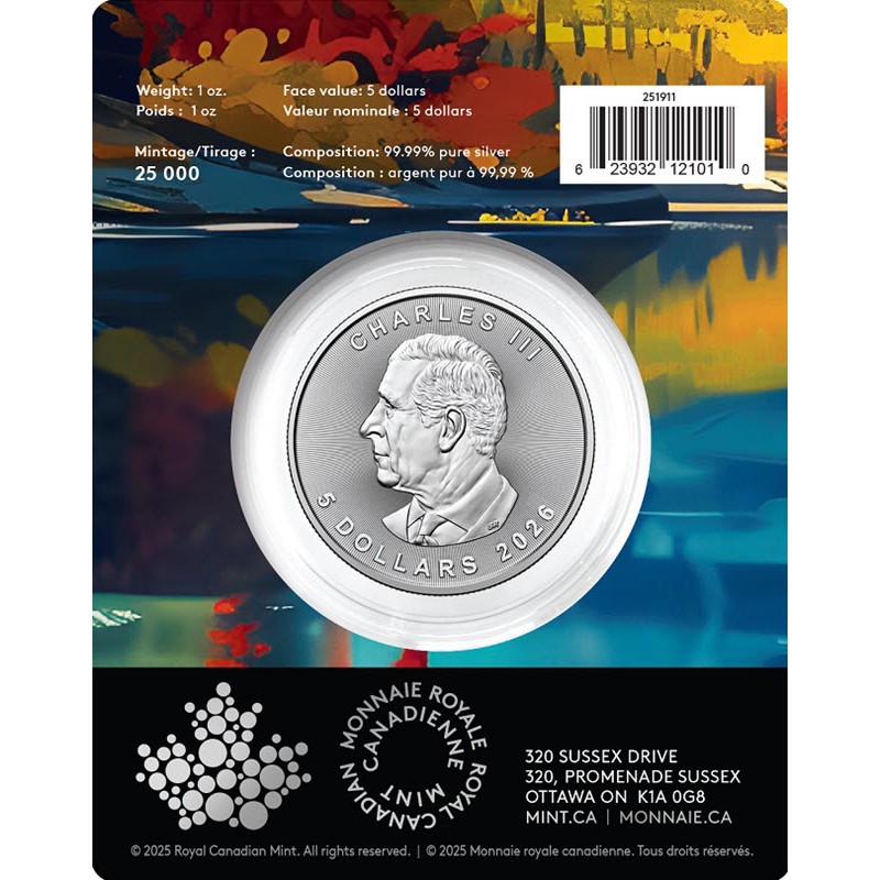 Эта чудесная серебряная монета - инвестиционный продукт премиум-класса в специальной упаковке с клеймом Волка. Каждая монета обработана с помощью MintShield™ — первого и единственного проверенного решения для уменьшения неприглядных белых или «молочных» пятен на серебряных инвестиционных монетах, разработанной Королевским монетным двором Канады. Поставляется в блистере с сертификатом подлинности. Тираж: 25000 штук.