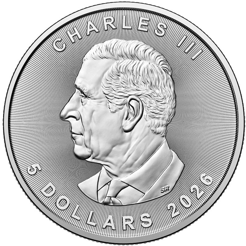 На аверсе изображен Его величество Король Чарльз III. На усечении шеи инициалы дизайнера SR (Steven Rosati). Вдоль канта надпись: CHARLES III 5 DOLLARS 2026 (Чарльз III, номинал, год чеканки).