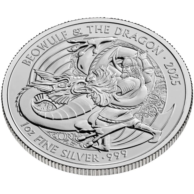 Серебряная монета Великобритании "Мифы и Легенды. Беовульф и Дракон" 2025 г.в., 31.1 г чистого серебра (проба 999)