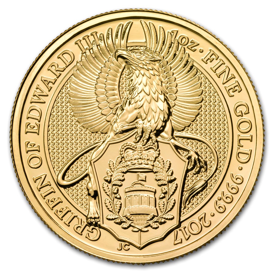 Золотая инвестиционная монета Великобритании "Звери Королевы. Грифон Эдуарда III" 2017 г.в., 31.1 г чистого золота (проба 9999)