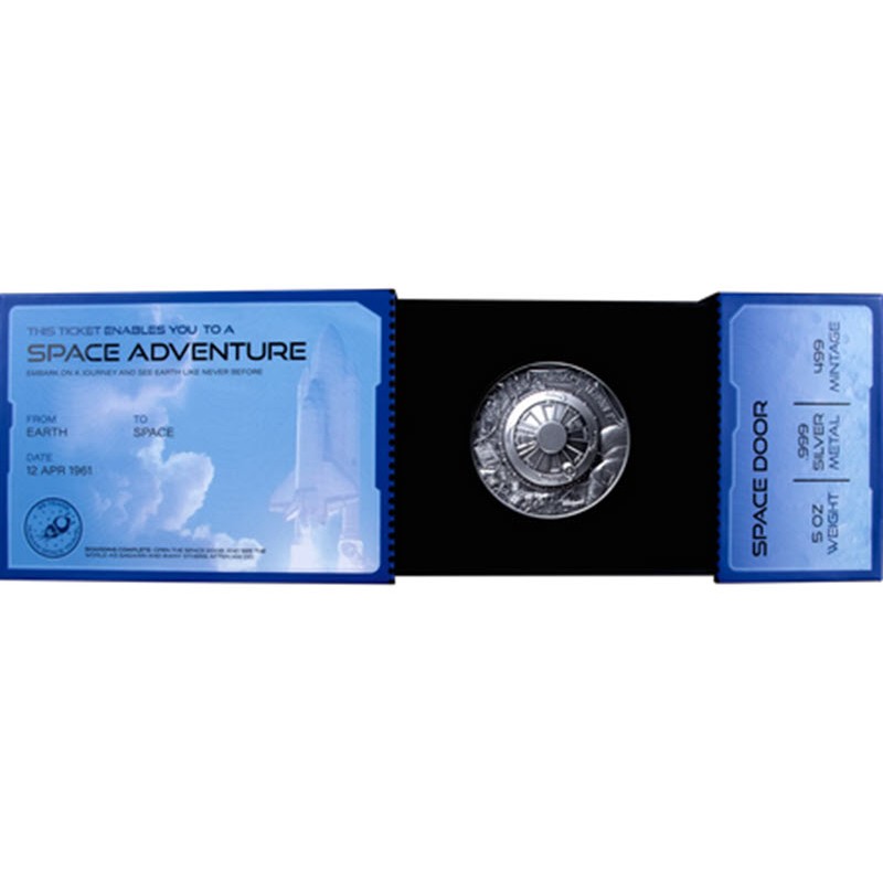 Эта удивительная серебряная монета весом в 5 унций посвящена 65-летию исторического полета Юрия Гагарина, отмечает начало освоения космоса человеком. У нее античная отделка и селективная окраска. Съемная        магнитная дверца, открывающая вид на Землю. Поставляется в оригинальном футляре с сертификатом подлинности. Тираж: 499 штук.