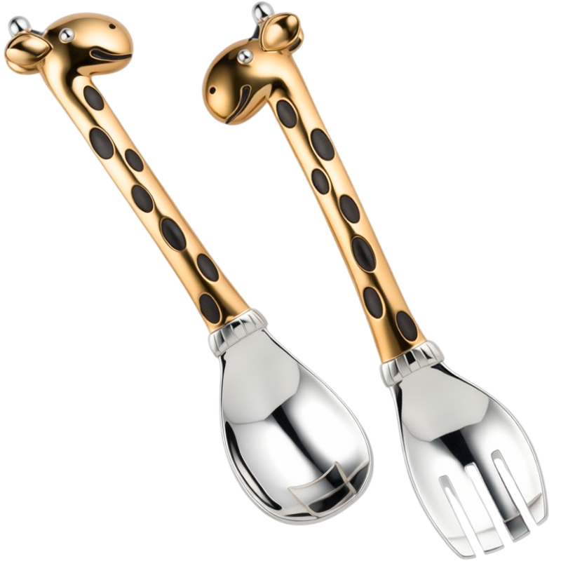 Этот изящный набор детских серебряных столовых приборов «Жирафы» станет поистине запоминающимся подарком на светлый праздник рождения малыша или крестины. Набор включает два прибора – ложку и вилку, изготовленные вручную из серебра 925 пробы, словно созданы для того, чтобы стать первыми друзьями малыша в его путешествии в мир еды. Их формы идеально подходят для маленьких ручек, а золотистые акценты добавляют яркости и нотку волшебства. Аккуратно перевязанные шелковыми лентами, приборы излучают особое очарование и готовы стать семейной реликвией, передаваясь из поколения в поколение.