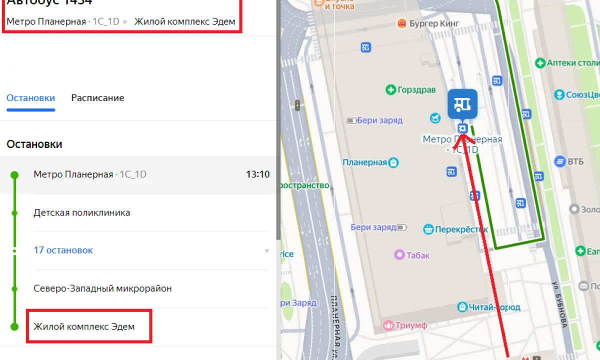 • Информация: Московский городской автобус до офиса продаж: от метро "Планерная" до ЖК "Эдем" автобус 1434. Каждые 20 минут. С 06:00 и до 23:00. Из метро 1 вагон из центра. Выход номер 1.
