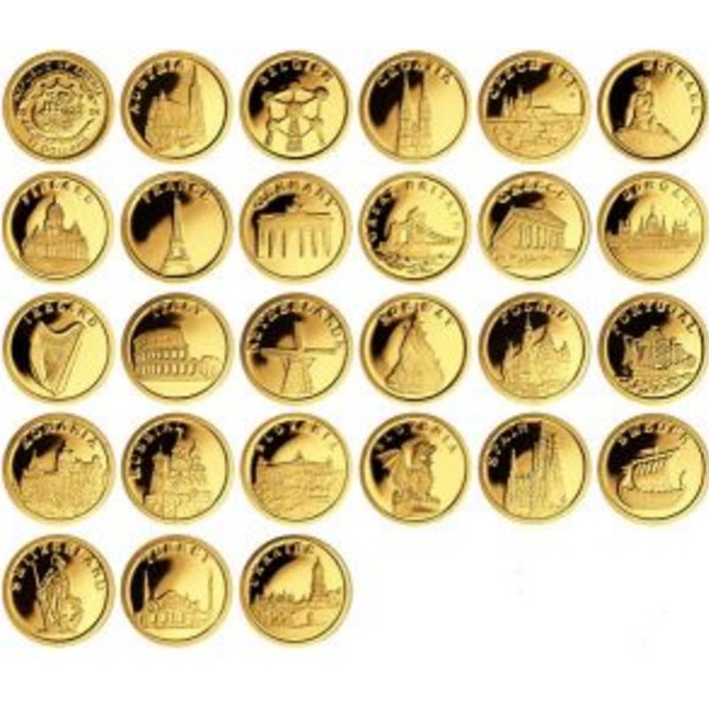 Этот набор из 26 монет, выпущенный Либерией в 2008 году, отчеканен на Баварском монетном дворе в Мюнхене. Каждая золотая монета содержит 1/50 унции золота 9999 пробы. На монетах изображены известные достопримечательности, такие как Бранденбургские ворота в Германии или Эйфелева башня в Париже. Ограниченный тираж.