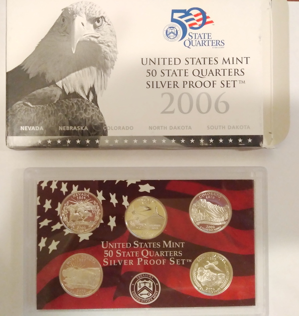 Набор серебряных монет США «50 штатов» 2006 года выпуска является частью серии монет с номиналом в четверть доллара, посвященных штатам Америки. В набор 2006 года входят монеты, посвященные Неваде, Небраске, Колорадо, Северной Дакоте, Южной Дакоте.