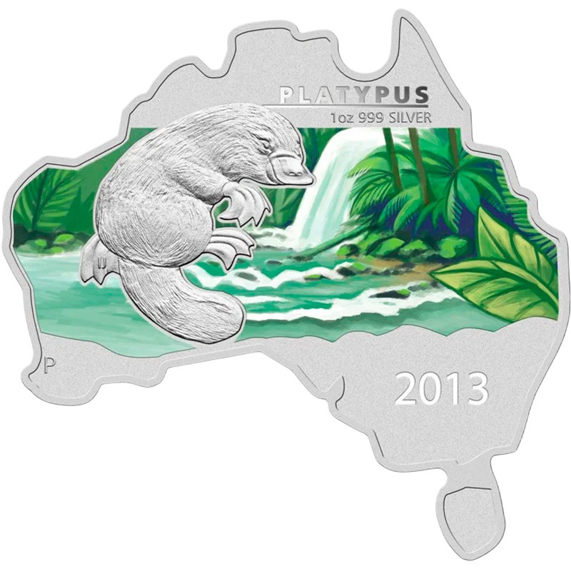 Серебряная монета Австралии "Карта Австралии. Утконос" 2013 г.в., 31.1 г чистого серебра (проба 999)