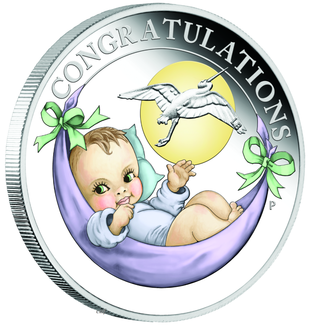 В западном фольклоре родители веками говорили своим детям, что младенцев рожает аист. В австралийском понимании этой легенды на реверсе монеты изображен младенец, оставленный на перевязи, а аист улетает в ночь.