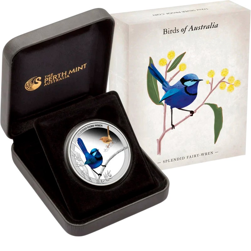 Серебряная монета весом в пол унции из серии «Птицы Австралии» от Пертского монетного двора Австралии посвящена уникальной птице австралийского континента – блестящему расписному малюру.