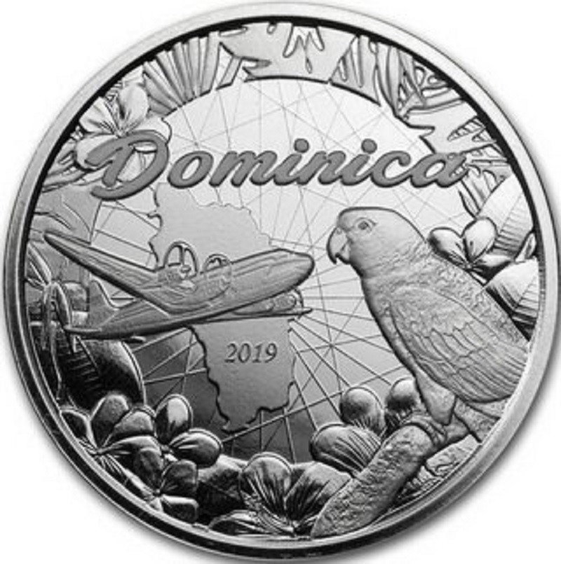 Серебряная монета Доминики "Национальная гордость Доминики - Попугай Сиссеру" 2019 г.в., 31,1 г чистого серебра (Проба 0,9999)