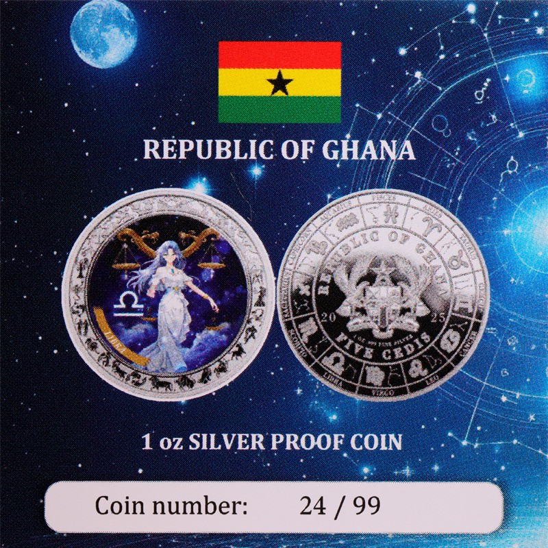 Серебряная монета Ганы "Аниме Зодиак. Весы" 2025 г.в. (пруф), 31.1 г чистого серебра (проба 999)