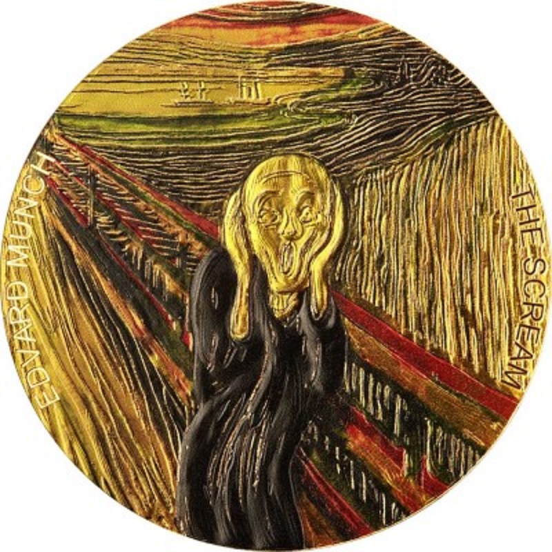Серебряная монета с изображением одной из известных картин мира «Крик» Эдварда Мунка.