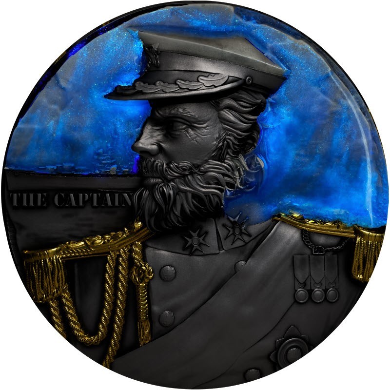 Эта удивительная серебряная монета весом в 2 унции – первая из серии «Мифы и хозяева семи морей», посвящена Капитану — хозяину морей. У нее качество античной отделки, высокий рельеф, выборочное золочение и свечение в ультрафиолете обеих сторон. Поставляется в оригинальном футляре с сертификатом подлинности. Тираж: 199 штук.