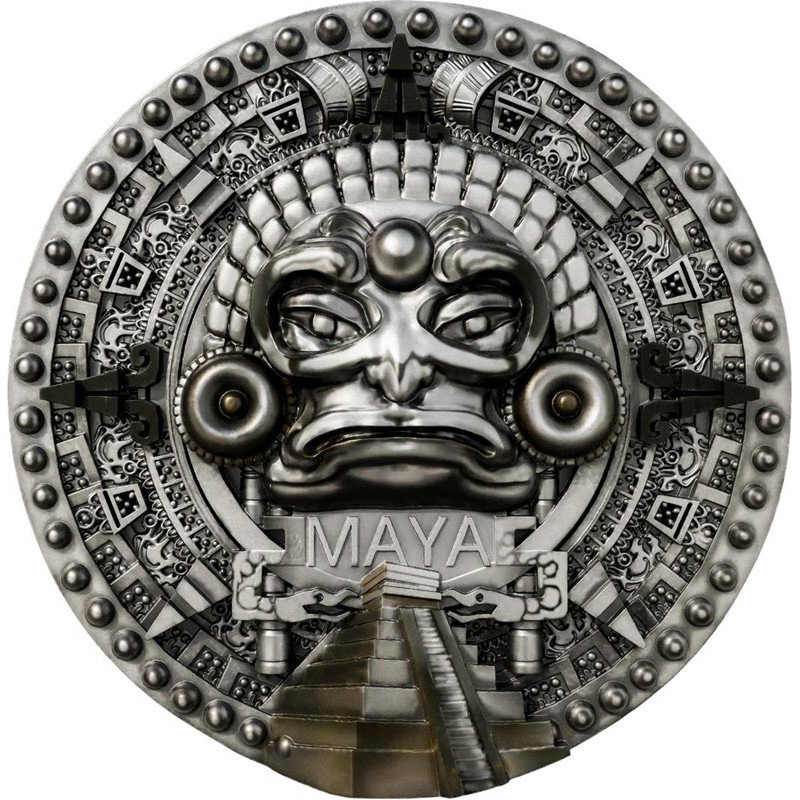 Эта чудесная серебряная монета весом в 2 унции посвящена цивилизации майя. У нее качество античной отделки. Поставляется в футляре с сертификатом подлинности. Тираж: 299 штук.