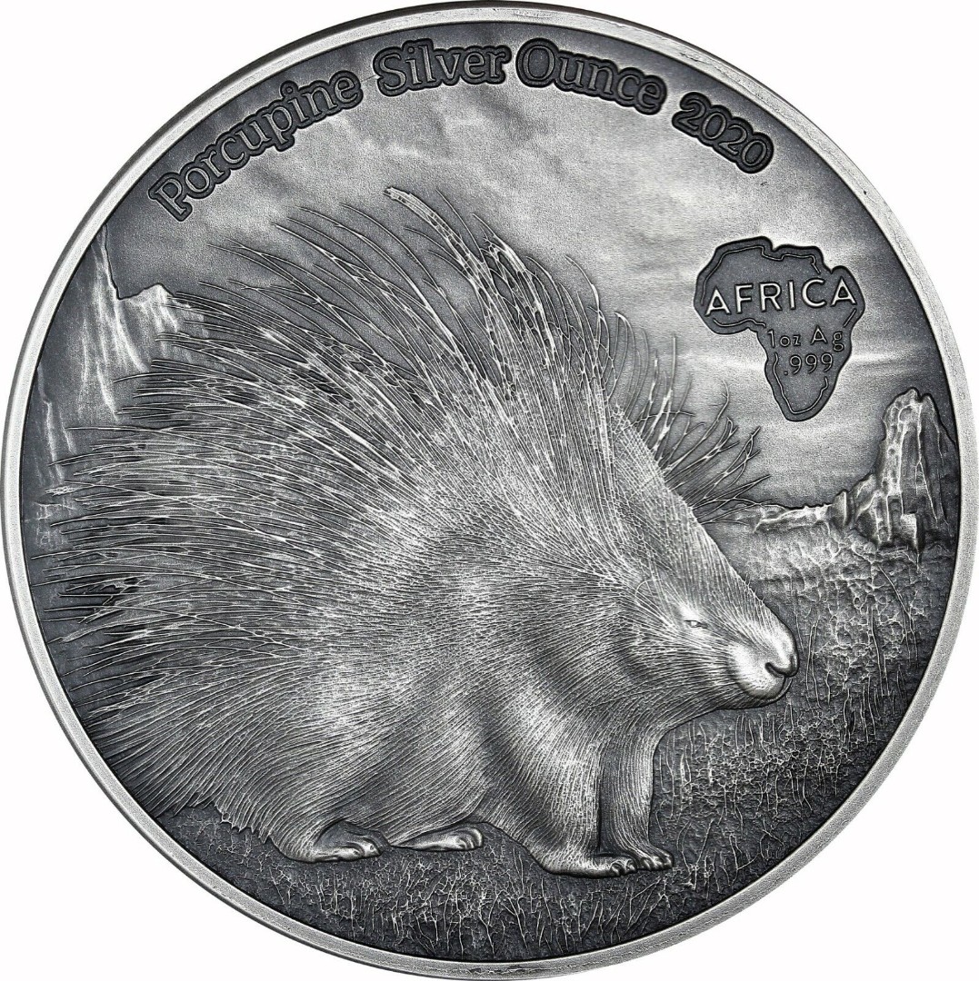 Серебряная монета Конго "Дикобраз" 2020 г.в., 31.1 г чистого серебра (Проба 0,999)