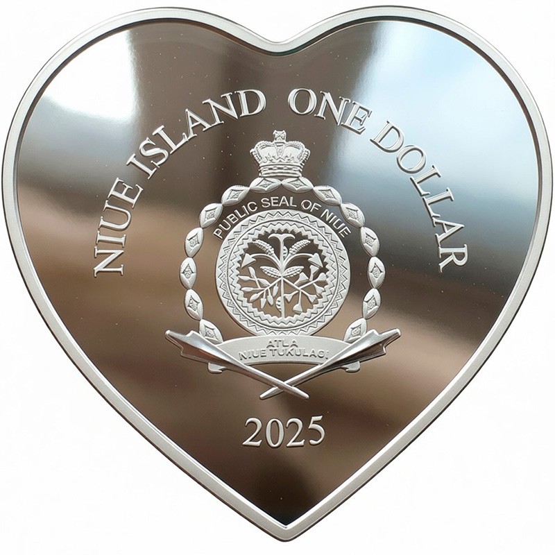 Серебряная монета Ниуэ "День Святого Валентина" 2025 г.в. (пруф с цветом), 20 г чистого серебра (проба 999)
