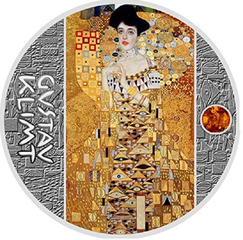 Серебряная монета, посвященная одной из известных картин Густава Климта «Портрет Адель Блох Бауэр»(«Золотая Адель»). Монета инкрустирована янтарем. Поставляется в футляре с сертификатом подлинности.
