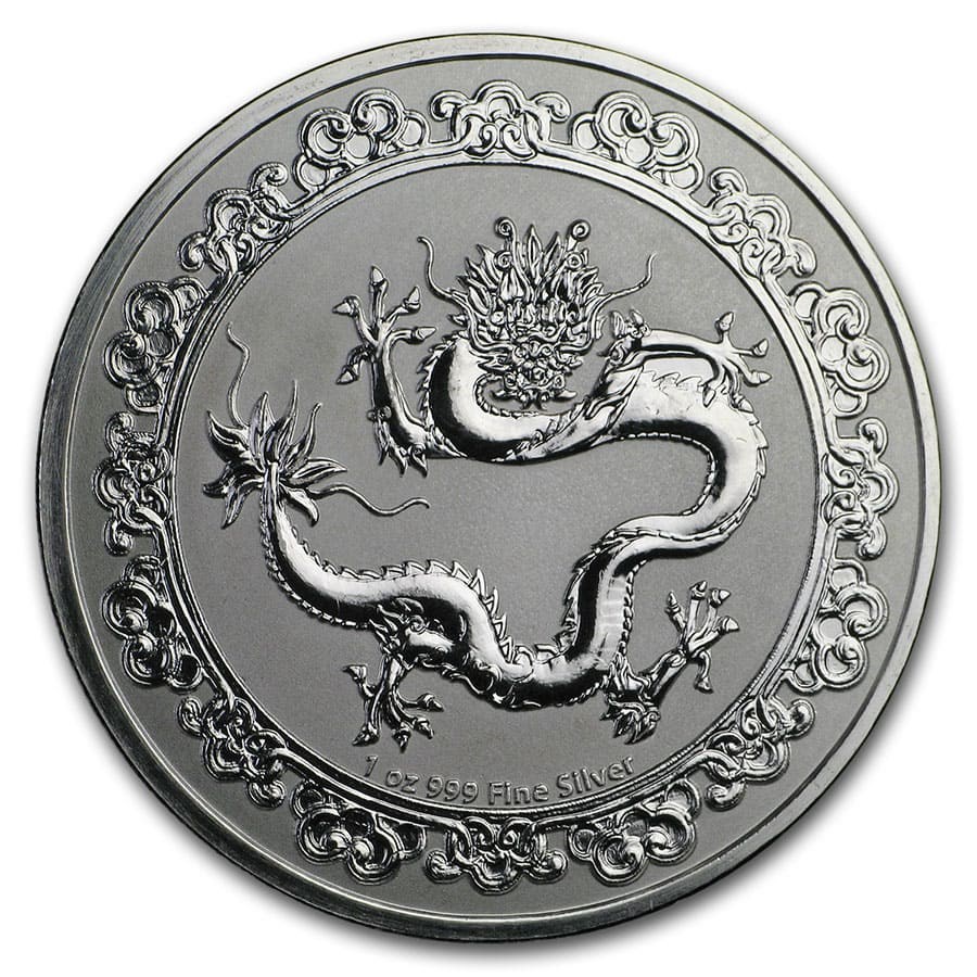 Изображен Небесный Зеленый Дракон, а также вес и чистота серебра.