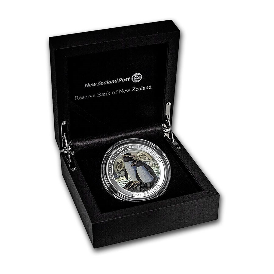 Первая памятная монета с изображением недавно обнаруженного хохлатого пингвина. Красочная монета выпущена тиражом всего 750 штук по всему миру.