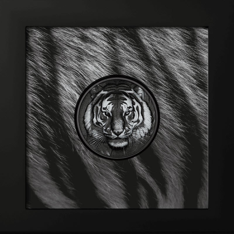 Эта чудесная серебряная монета посвящена тигру – символу силы и независимости. У нее качество пруф черный обсидиан. Поставляется в оригинальном футляре с сертификатом подлинности. Тираж: 500 штук.