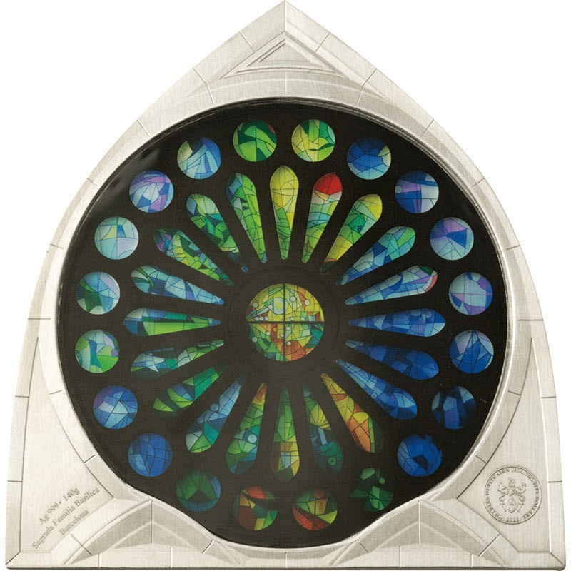 Серебряная монета Островов Питкэрн "Окно Саграда Фамилия" 2025 г.в., 140 г чистого серебра (проба 999)
