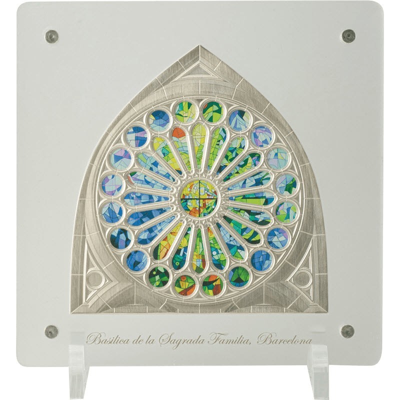 Эта очаровательная серебряная монета весом 140 грамм посвящена Базилике Саграда Фамилия в Барселоне. У нее размер 110 мм, качество бриллиант анциркулейтед и селективная окраска. Поставляется в акриловом блоке с сертификатом подлинности. Тираж: 300 штук.