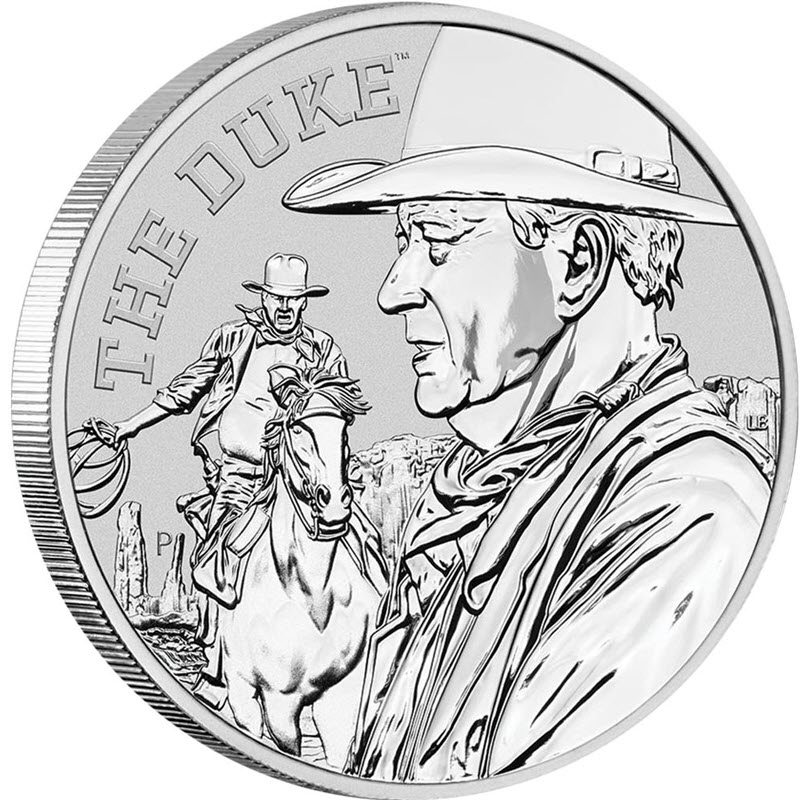 Правительство и казначейство Тувалу выпустили серебряные монеты достоинством в одну унцию в честь американского актера Джона Уэйна, главного героя западного кинематографа, который снялся в более чем 170 фильмах за свою более чем 50-летнюю карьеру, снял или продюсировал их. На протяжении многих фильмов, в которых он снимался, Джон Уэйн остается одним из самых популярных американских артистов 20-го века.