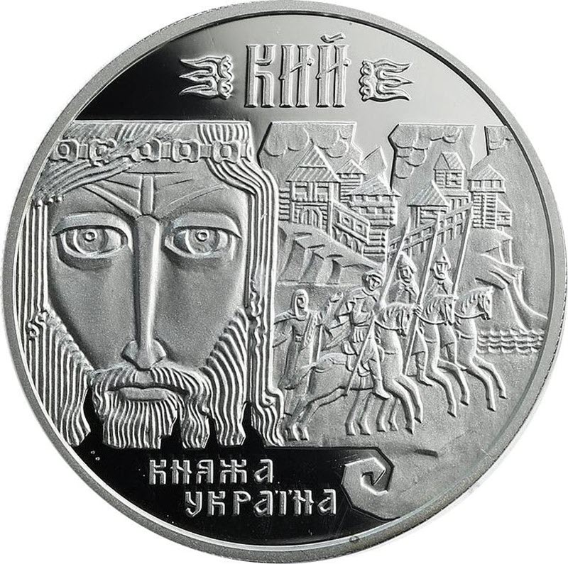На реверсе изображены князь Кий, изображения фигур трёх братьев и сестры (Кий, Щек, Хорив и Лыбедь), на фоне крепости. Вдоль канта надпись: КИЙ КНЯЖА УКРАЇНА (Кий – Князь Украины).