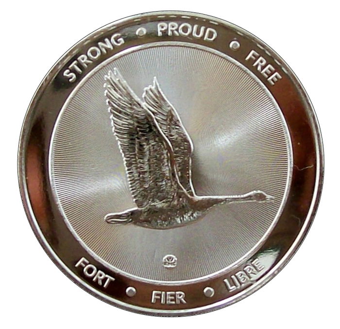 Серебряный жетон Канады «150 лет Канадской конфедерации - Канадский гусь» 2017 года выпуска. Монета отчеканена Королевским монетным двором Канады.