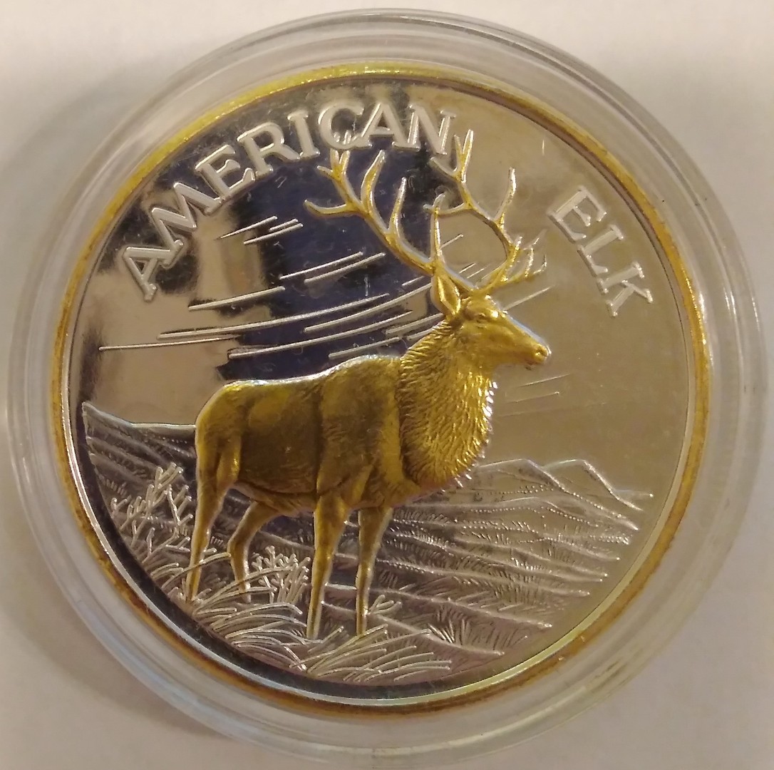 Серебряный жетон США «Американский Лось» 62.2 г чистого серебра (проба 0.999) с позолотой