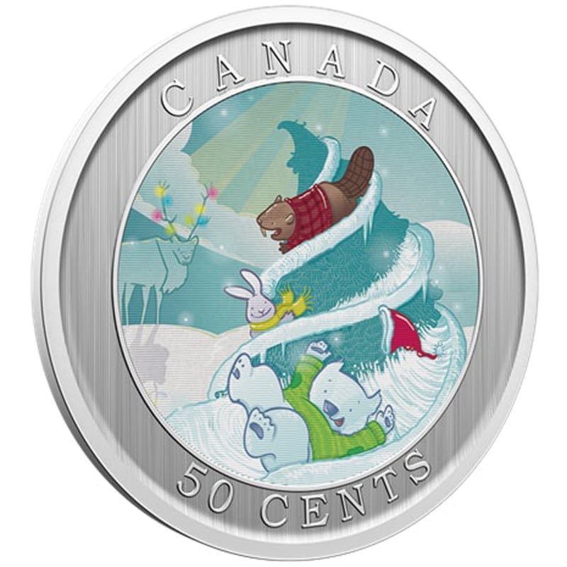 Эта чудесная монета из никелированной стали от Канадского монетного двора представляет канадскую зиму. У нее качество BU, селективная окраска и лентикулярная технология, при наклоне монеты создается иллюзия движения, и кажется, что персонажи скользят по снегу. Поставляется в оригинальном футляре с сертификатом подлинности. Тираж: 30000 штук.