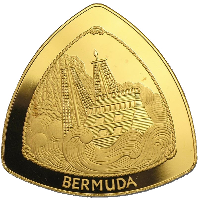 Золотая монета серии «Бермудский треугольник». Монета треугольной формы.