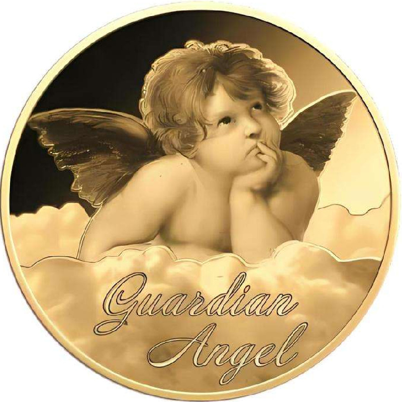 Эта потрясающая золотая монета весом 1/1000 унции посвящена ангелу-хранителю, который оберегает нас день и ночь. У неё диаметр 16 мм и качество пруф-лайк. Поставляется в карточке с сертификатом подлинности. Тираж: 50 000 штук.