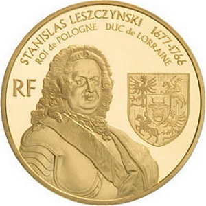 Золотая монета Франции «Король Станислав Лещинский» 2007 года выпуска посвящена королю Польши и Польско-Литовского государства (Речь Посполитая), герцогу Лотарингии. Во французском городе Нанси Лещинский создал школу для польских молодых людей. Просветитель и филантроп. Редкая монета.