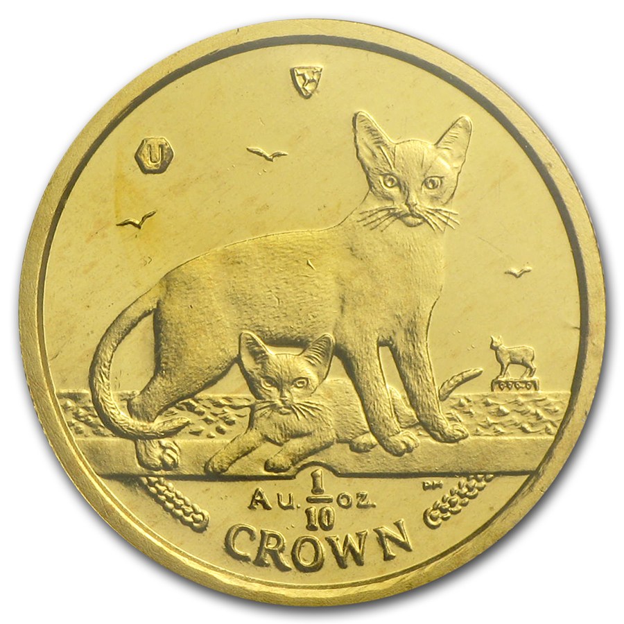 Золотая монета Острова Мэн «Абиссинские кошки» 2010 года выпуска является частью знаменитой коллекции монет с изображениями кошек.