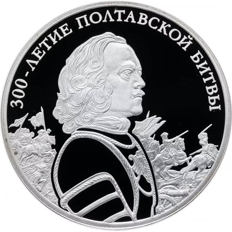 Памятная серебряная монета 2009 г. Банка России посвящена Полтавской битве 8 июля 1709 года. У нее качество пруф. Тираж: 10000 штук.