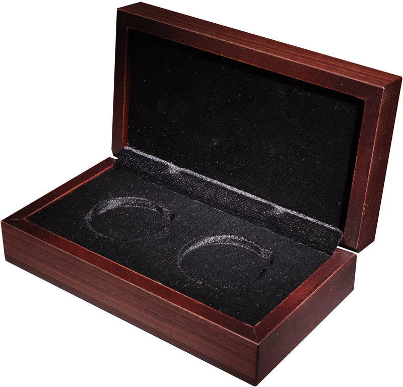 Подарочный деревянный футляр для двух монет.