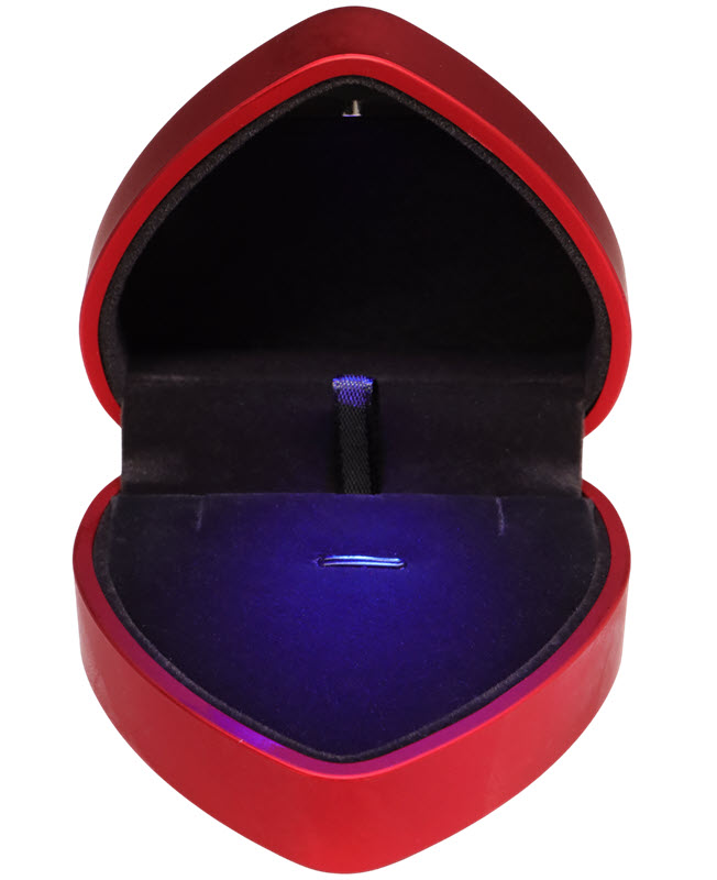 Подарочный футляр для ювелирного украшения. У него красный цвет в форме сердца. Наружный размер: 7,9 Х 8,5 Х 4,5 см.